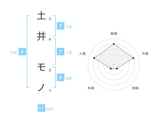 土井 モノさんの総格は11画の4点!