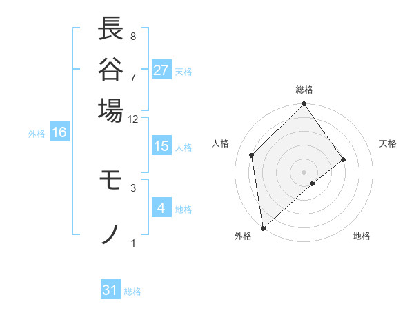 長谷場 モノさんを姓名の画数から五運を鑑定