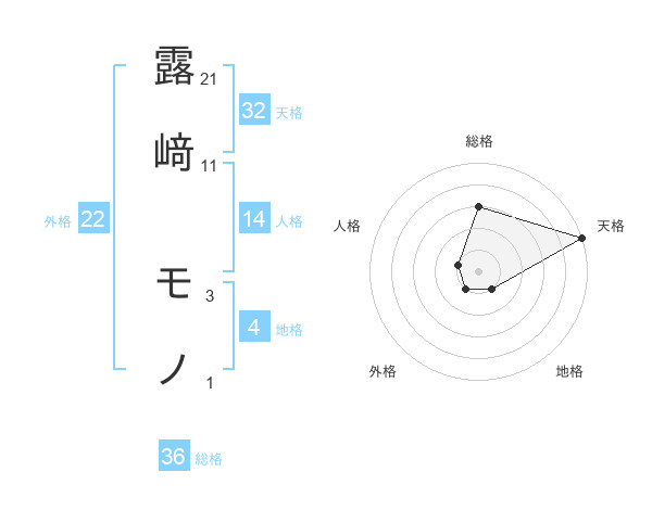 露﨑 モノさんを姓名の画数から五運を鑑定