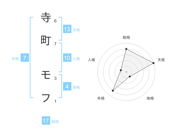 寺町 モフさんの総格は17画の4点!