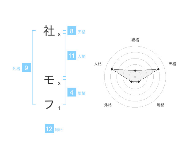社 モフさんの総格は12画の1点!