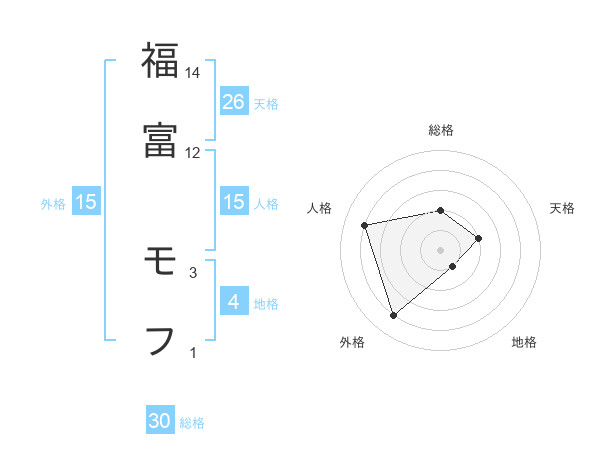福富 モフさんの地格は4画の1点!