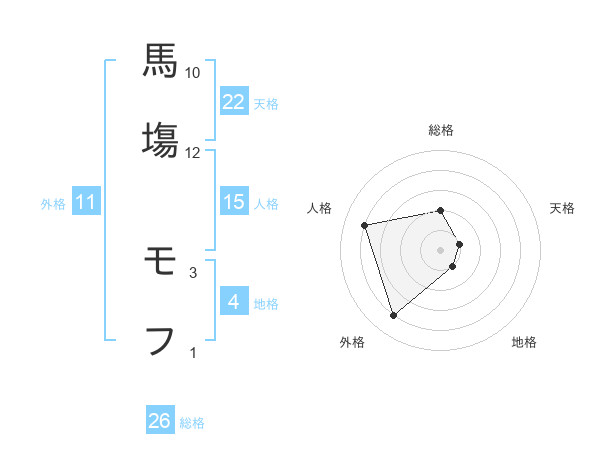 馬塲 モフさんの天格は22画の1点!