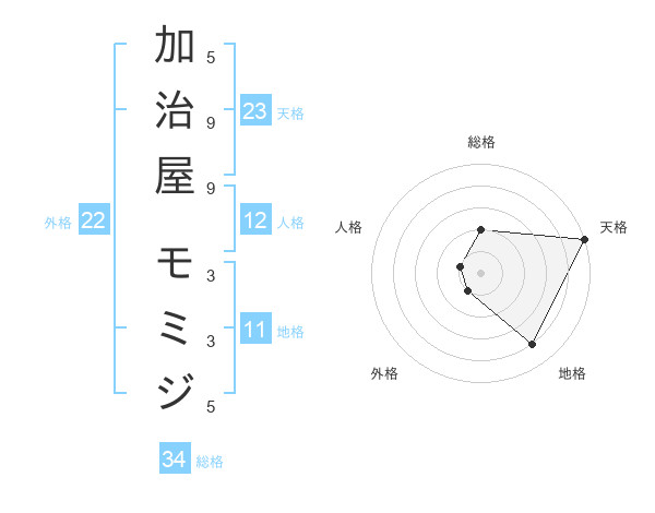 加治屋 モミジさんの天格は23画の5点