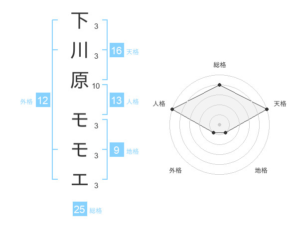 下川原 モモエさんを姓名の画数から五運を鑑定
