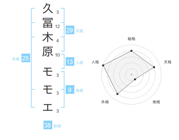 久冨木原 モモエさんの総格は38画の4点!
