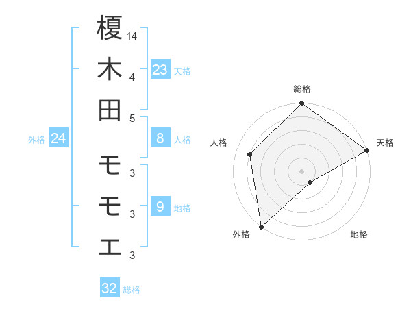 榎木田 モモエさんの総格は32画の5点!