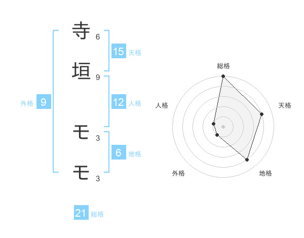 寺垣 モモさんの総格は21画の5点!