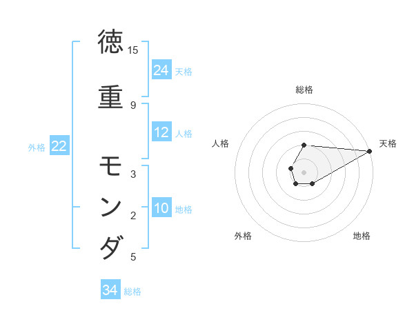 徳重 モンダさんを姓名の画数から五運を鑑定