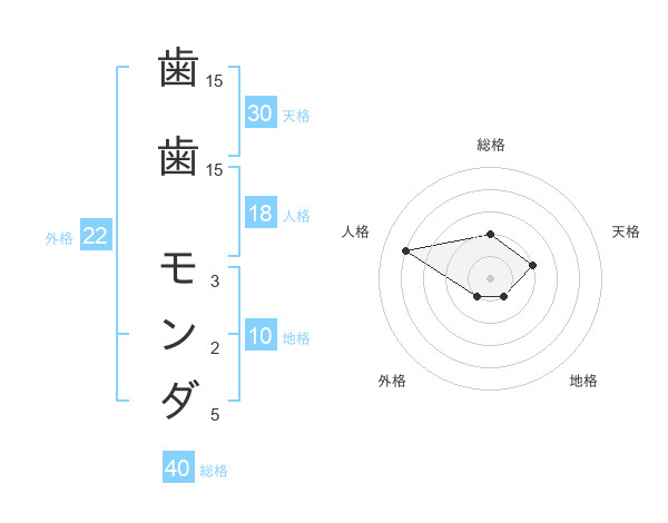 歯歯 モンダさんを姓名の画数から五運を鑑定