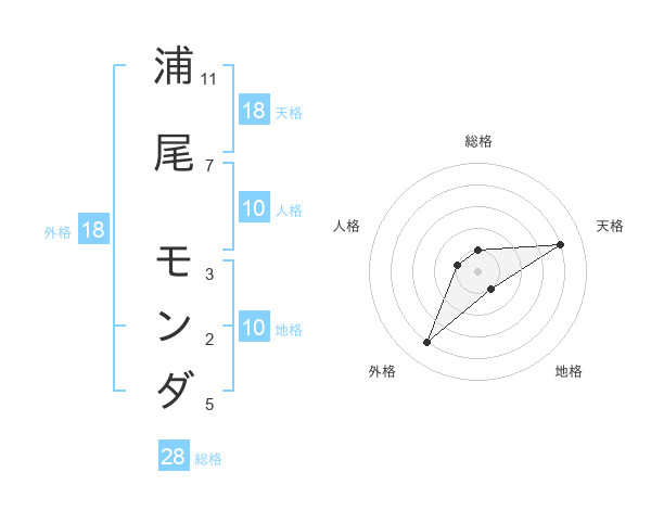 浦尾 モンダさんの天格は18画の4点!