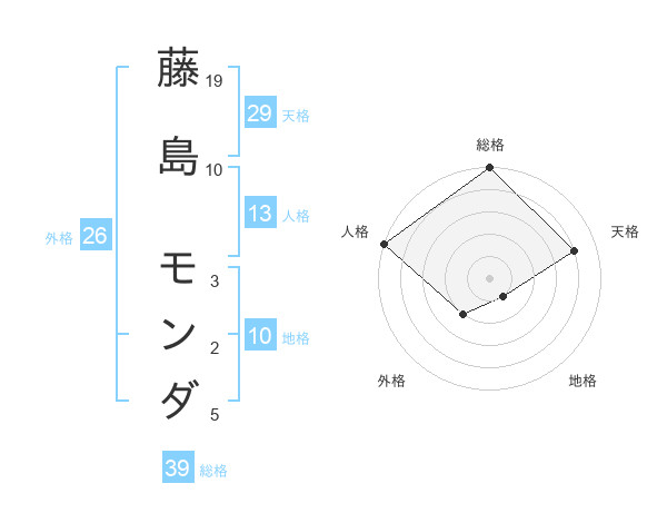藤島 モンダさんの天格は29画の4点!