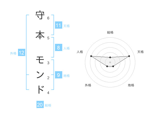 守本 モンドさんの総格は20画の1点!