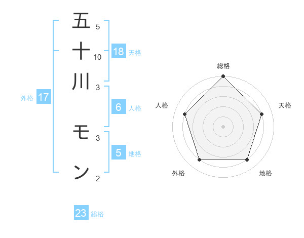 五十川 モンさんの総格は23画の5点