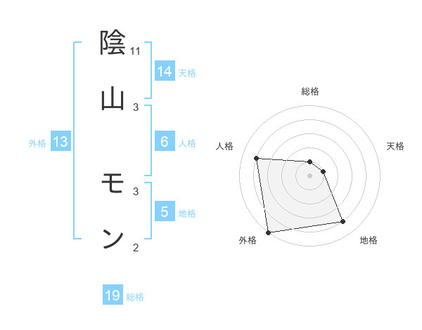 陰山 モンさんの外格は13画の5点!