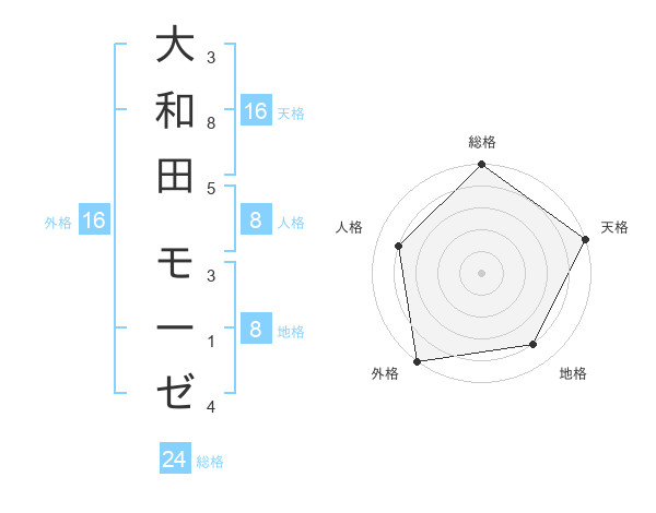 大和田 モーゼさんを姓名の画数から五運を鑑定