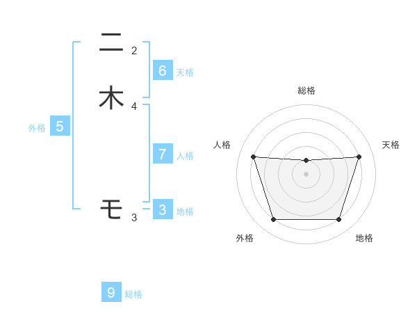 二木 モさんの天格は6画の4点!