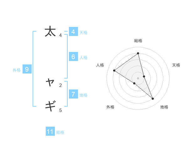 太 ャギさんの総格は11画の4点!