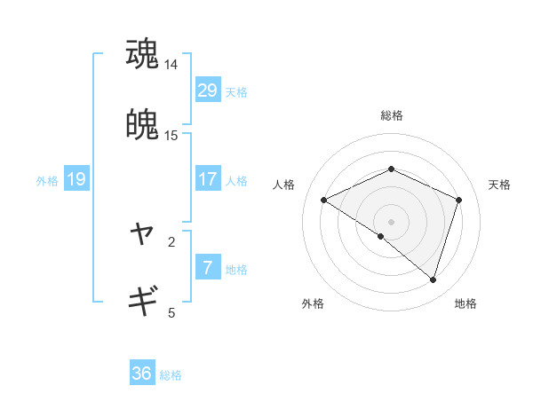 魂魄 ャギさんの天格は29画の4点!