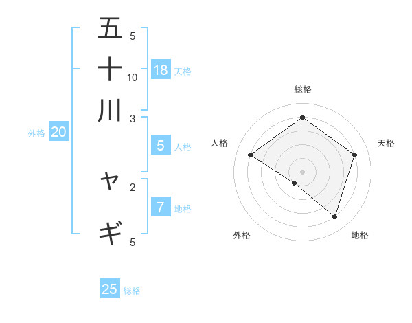 五十川 ャギさんの総格は25画の4点!