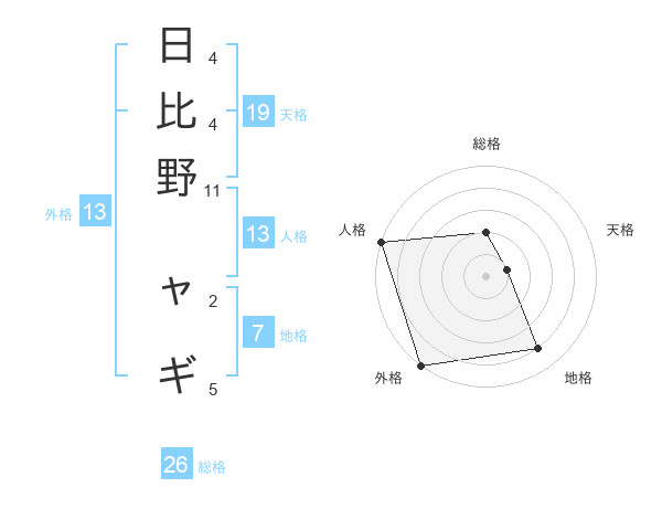 日比野 ャギさんを姓名の画数から五運を鑑定