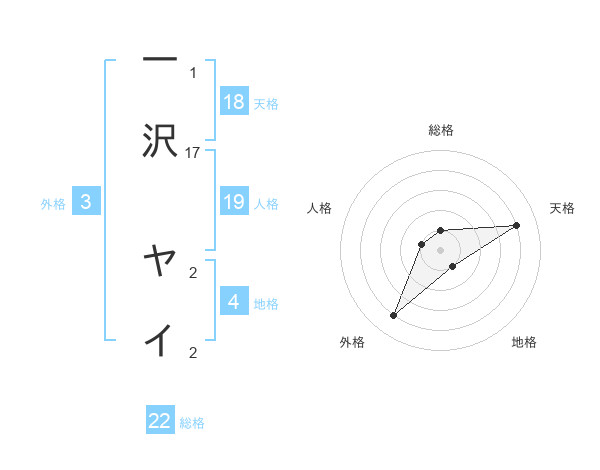 一沢 ヤイさんを姓名の画数から五運を鑑定