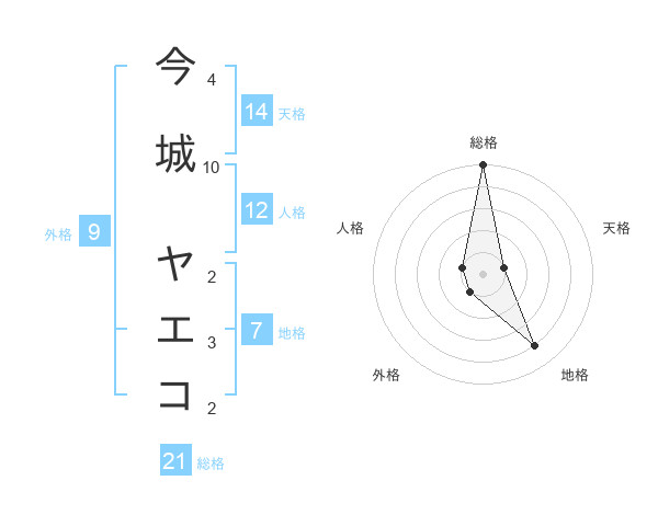 今城 ヤエコさんを姓名の画数から五運を鑑定