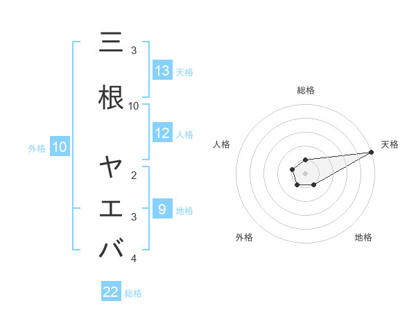 三根 ヤエバさんを姓名の画数から五運を鑑定