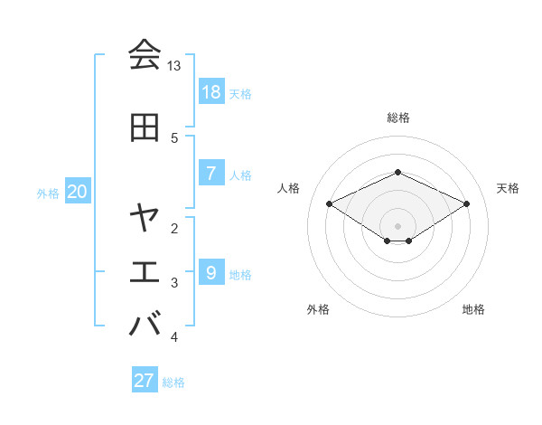 会田 ヤエバさんを姓名の画数から五運を鑑定