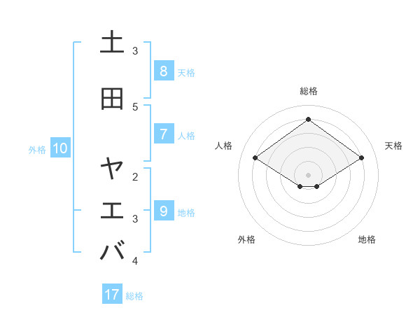 土田 ヤエバさんを姓名の画数から五運を鑑定
