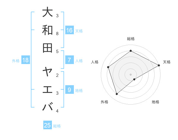 大和田 ヤエバさんを姓名の画数から五運を鑑定