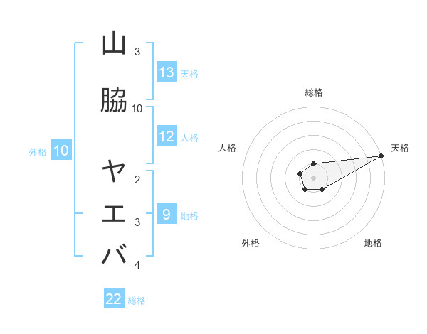 山脇 ヤエバさんの総格は22画の1点!