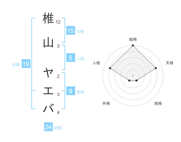 椎山 ヤエバさんの総格は24画の5点!