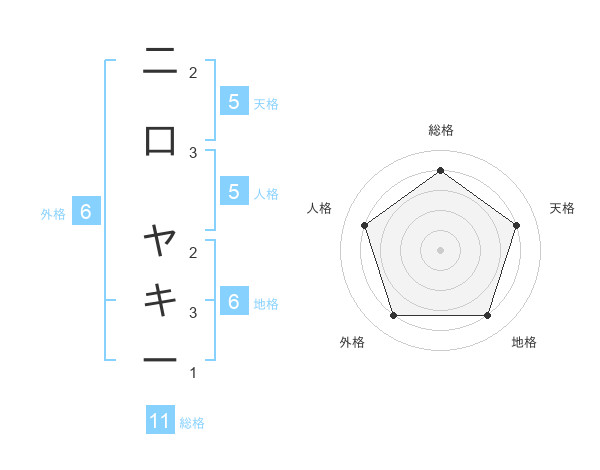 二口 ヤキーさんの総格は11画の4点!