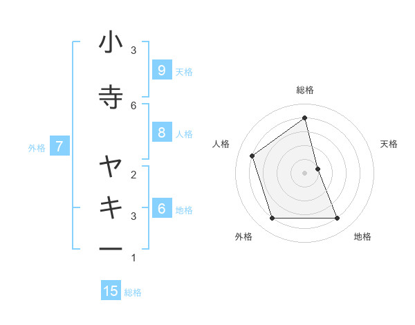 小寺 ヤキーさんを姓名の画数から五運を鑑定