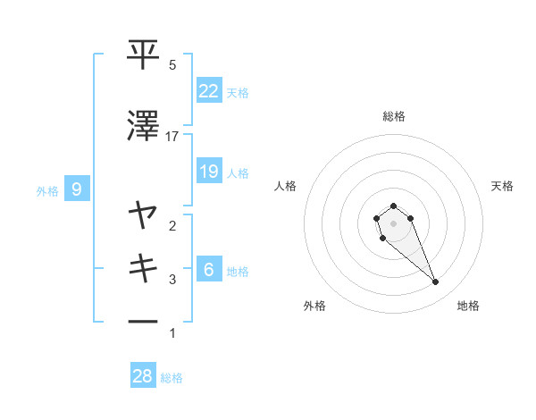 平澤 ヤキーさんを姓名の画数から五運を鑑定