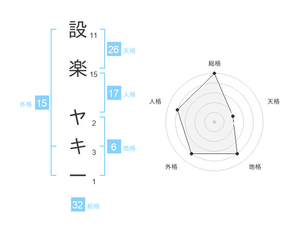 設楽 ヤキーさんを姓名の画数から五運を鑑定