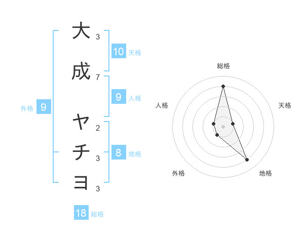 大成 ヤチヨさんを姓名の画数から五運を鑑定