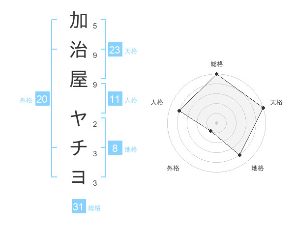 加治屋 ヤチヨさんを姓名の画数から五運を鑑定