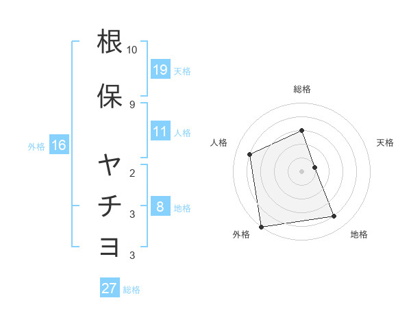 根保 ヤチヨさんの総格は27画の3点