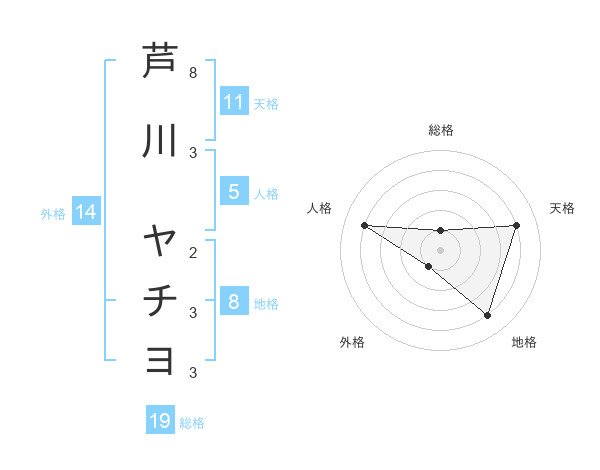 芦川 ヤチヨさんの総格は19画の1点!