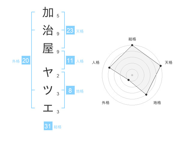 加治屋 ヤツエさんを姓名の画数から五運を鑑定
