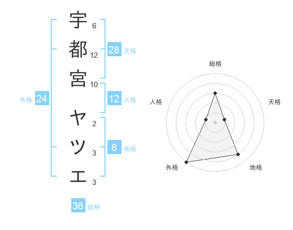 宇都宮 ヤツエさんを姓名の画数から五運を鑑定