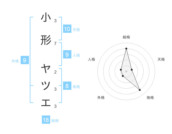 小形 ヤツエさんを姓名の画数から五運を鑑定