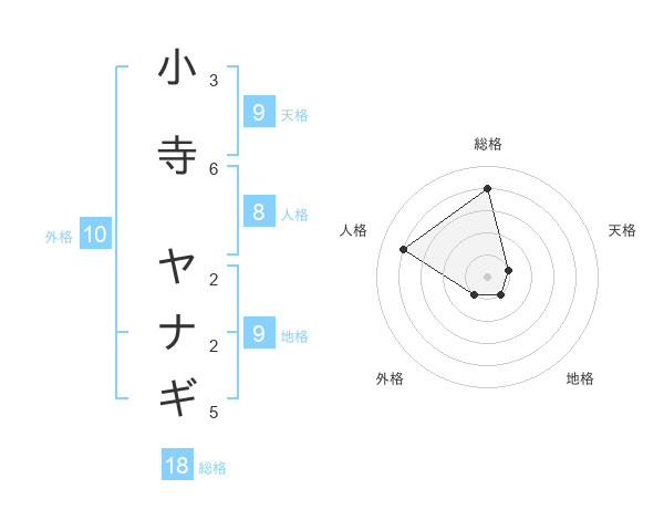 小寺 ヤナギさんの総格は18画の4点!