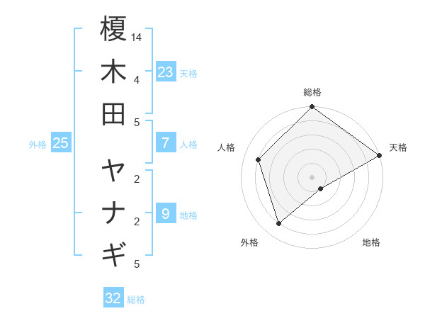 榎木田 ヤナギさんを姓名の画数から五運を鑑定