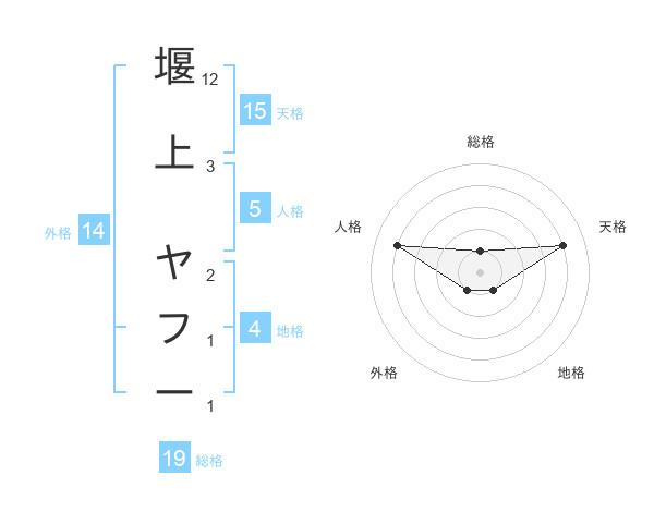 堰上 ヤフーさんの総格は19画の1点!