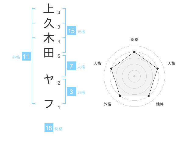 上久木田 ヤフさんを姓名の画数から五運を鑑定