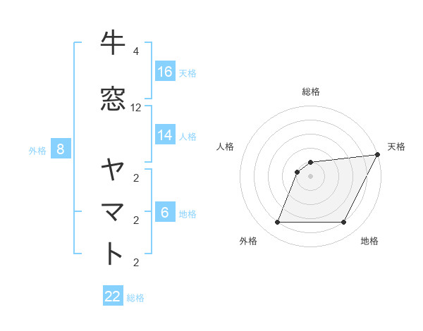牛窓 ヤマトさんの総格は22画の1点!