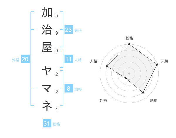 加治屋 ヤマネさんを姓名の画数から五運を鑑定